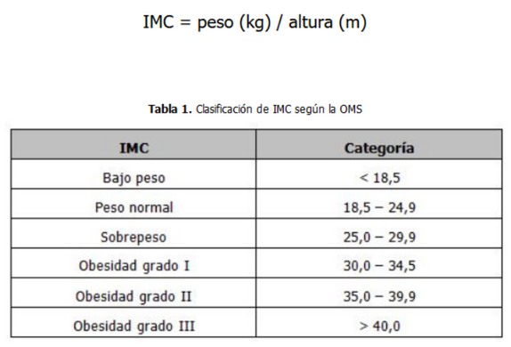 Una vez obtenido el resultado se compara con una tabla definida por la organización Mundial de la Salud.